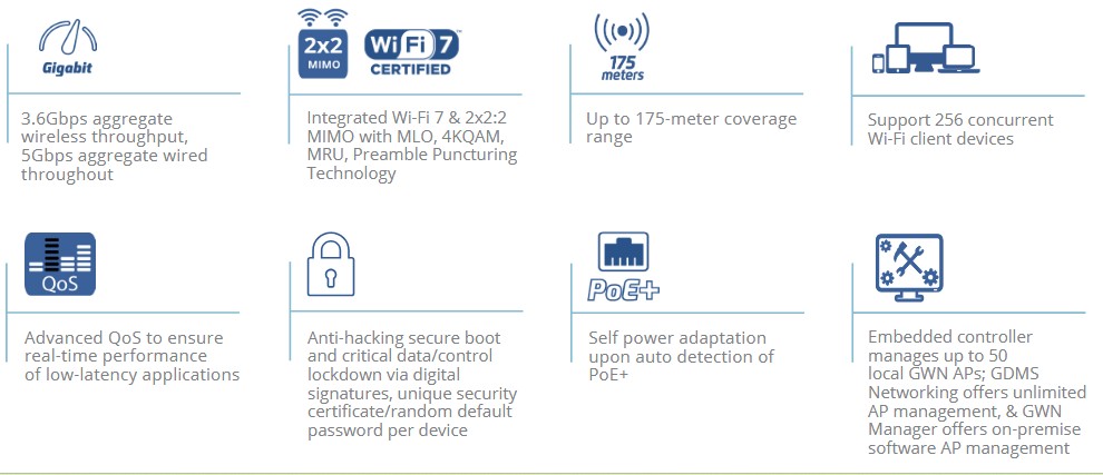 ACCESS POINT GWN7670 WIFI 7 + POE 2:2X2 256 Users